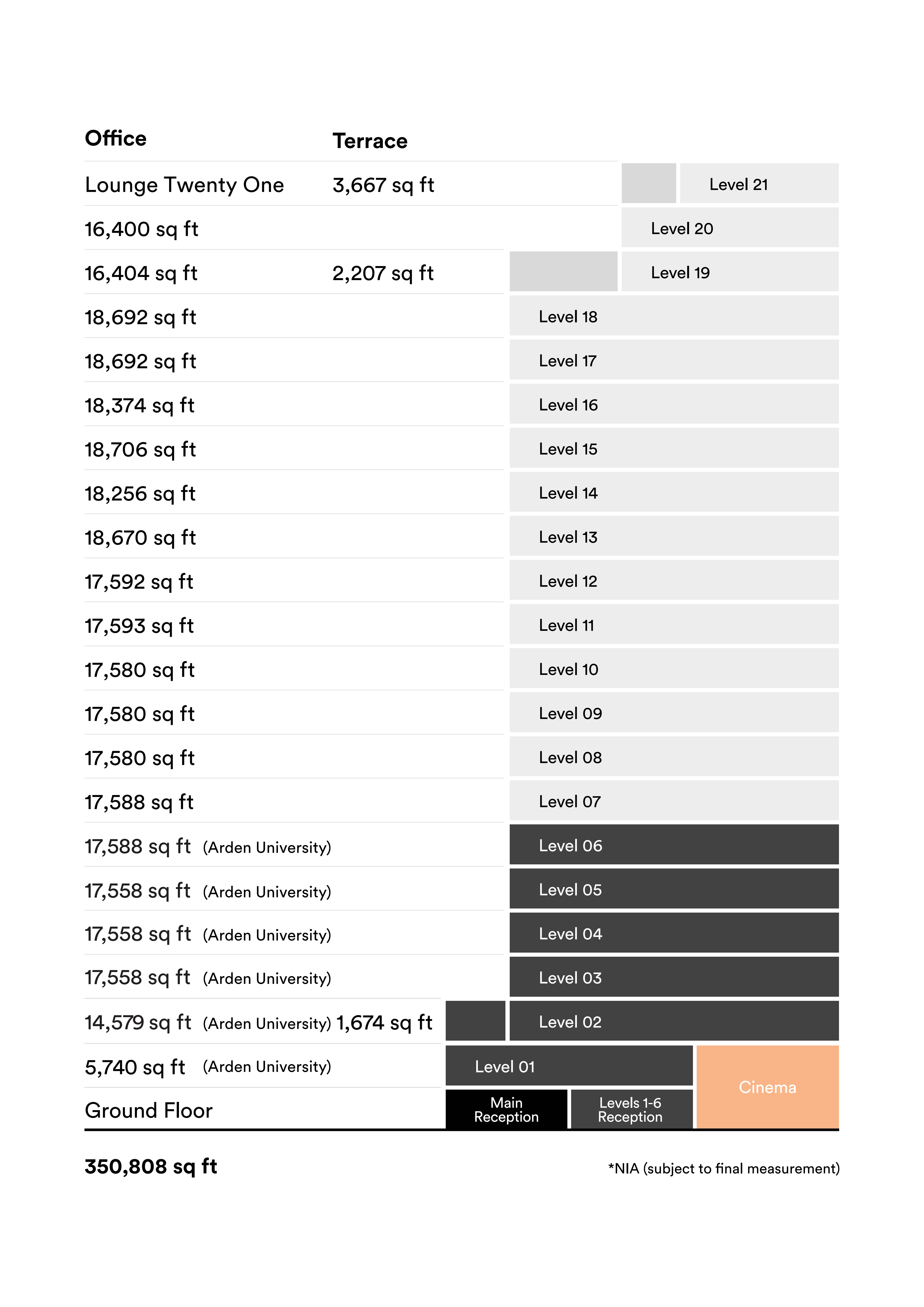 The office space in The Turing Building at Stratford Cross is designed for modern, flexible working and collaborative innovation. It features 21 floors of Grade A space with efficient, clear floorplates, full-height glazing on all elevations, structural soft spots for inter-connectivity between floors and biodiverse terraces to enjoy.